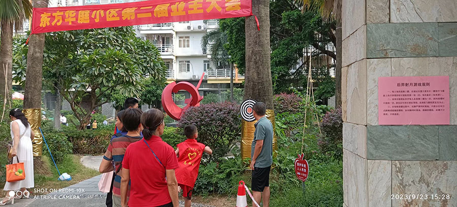 粵信物業(yè)東方華庭服務(wù)中心聯(lián)合東方華庭小區(qū)業(yè)委會(huì)、云埔街道東區(qū)社區(qū)居委會(huì)舉辦了“月滿華誕,情滿雙節(jié)”主題活動(dòng)?;顒?dòng)設(shè)置了多個(gè)游戲供業(yè)主游玩,如猜燈謎、套圈圈、吹蠟燭、投飛鏢等,大家臉上都洋溢著燦爛歡樂(lè)的笑容,整個(gè)小區(qū)充滿了歡聲笑語(yǔ),本次活動(dòng)不僅讓業(yè)主感受到中秋的節(jié)日氛圍,也拉近了鄰里關(guān)系,提升幸福感。
